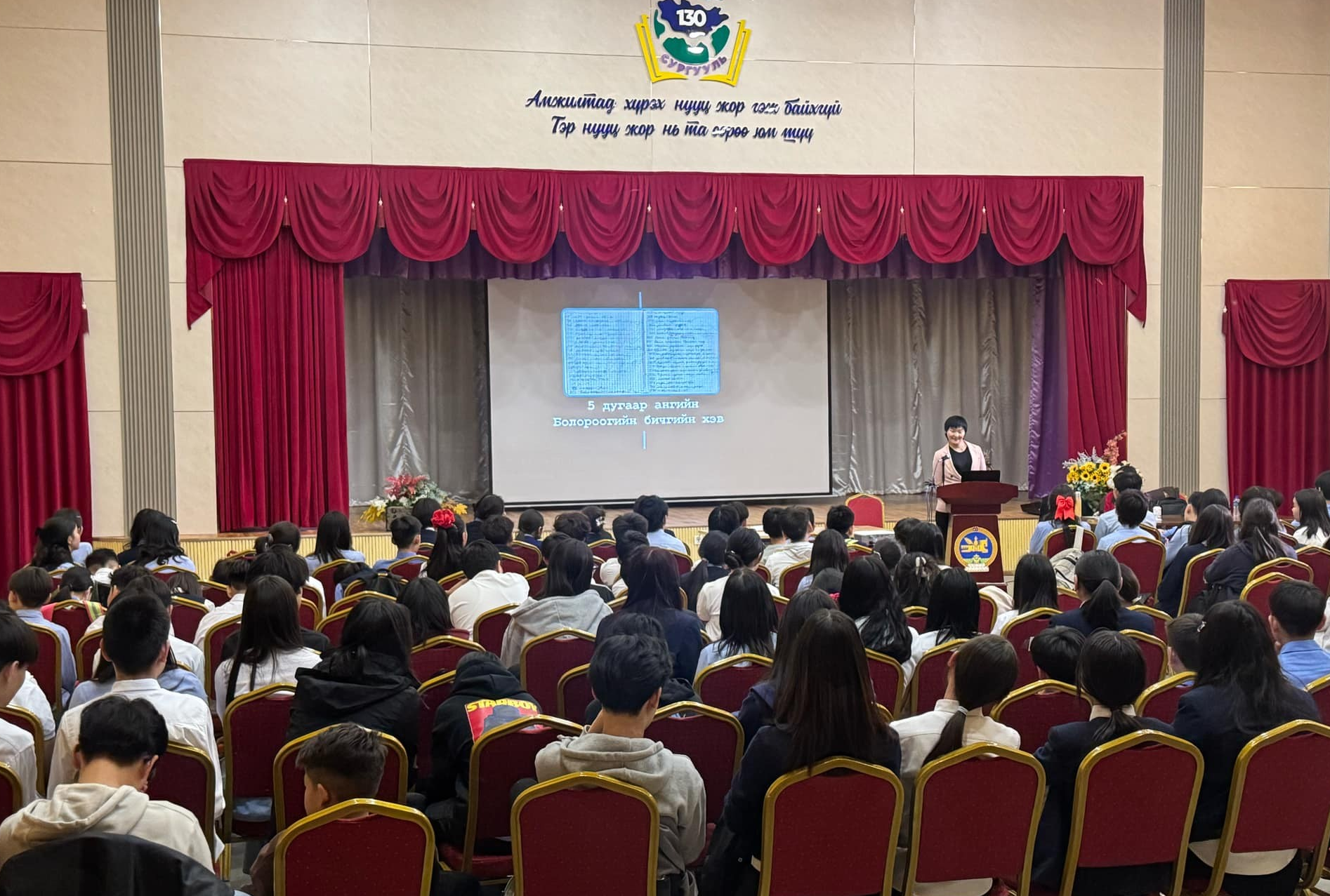 Ерөнхий боловсролын сургуулийн багш, ажилтан, суралцагчдын хөгжлийн бэрхшээлийн талаарх мэдлэг, ойлголтыг нэмэгдүүлэх, хөгжлийн бэрхшээлтэй суралцагчдын хэрэгцээ, шаардлагад нийцсэн сургалтын орчин, нөхцөлийг бүрдүүлэх, суралцагчдад зориулан хэрхэн зорилготой амьдрах талаар урам зориг өгөх цуврал сургалтыг “Хөгжлийн бэрхшээлтэй хүүхдийг боловсролд тэгш хамруулахад бидний оролцоо” төслийн хүрээнд 2025 оны 04 дүгээр сарын 17-ны өдөр нийслэлийн ерөнхий боловсролын 130 дугаар сургуулийн багш, ажилтан, бага, дунд, ахлах ангийн суралцагчдад сургагч багш Б.Болороо нөлөөллийн сургалтыг зохион байгууллаа.