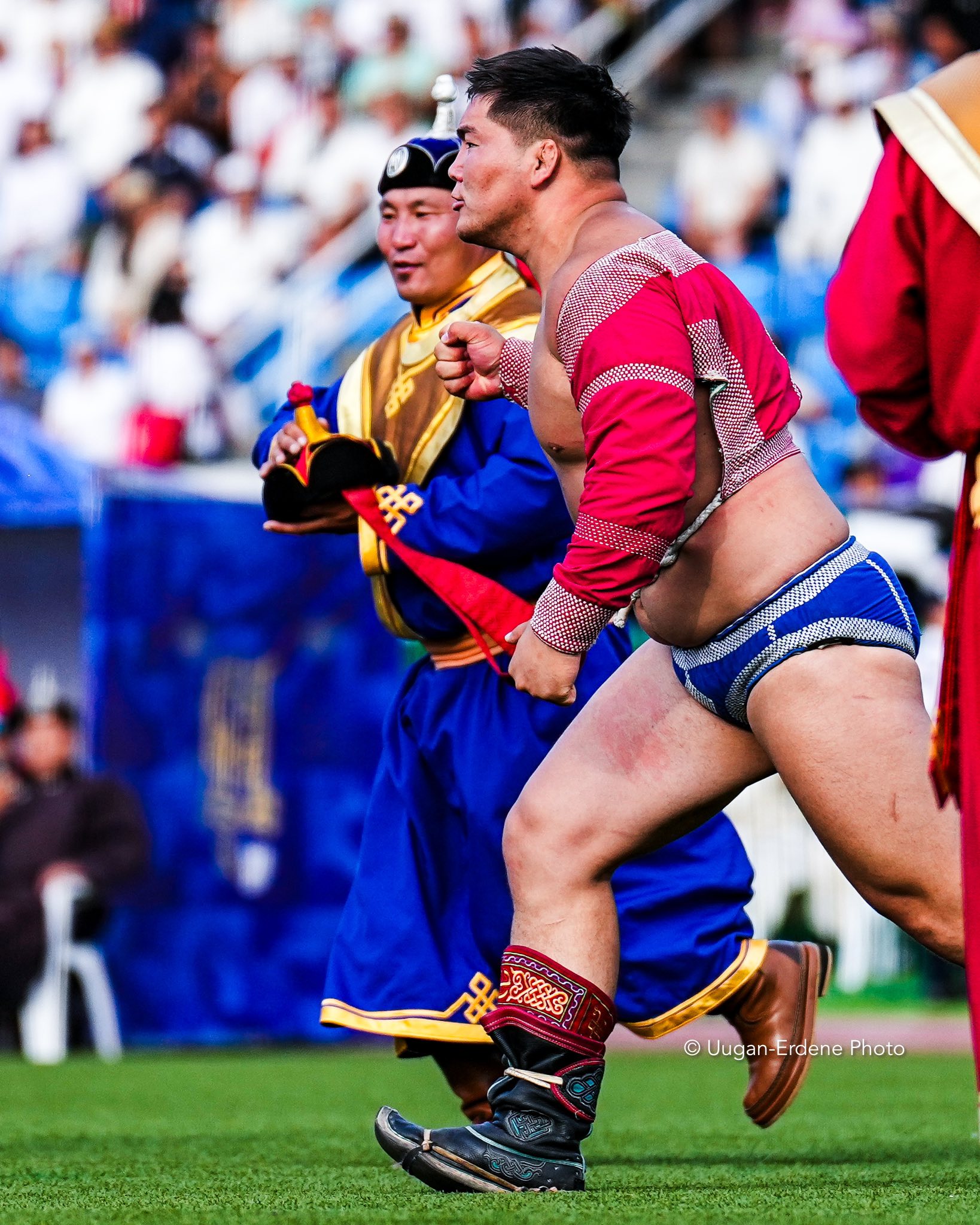 Улсын их баяр наадмын үзүүр түрүүнд Улсын начин Э.Батмагнай, аймгийн хурц арслан Н.Өсөхбаяр нар шалгаран барилдлаа.