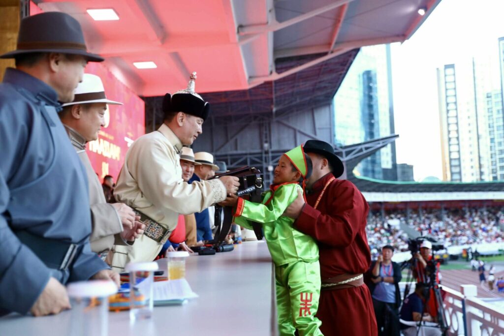 Монгол Улсын Ерөнхийлөгч Ухнаагийн Хүрэлсүх Тулгар төрийн 2234 жил, Их Монгол Улс байгуулагдсаны 819 жил, Үндэсний эрх чөлөө, тусгаар тогтнолоо сэргээн мандуулсны 114 жил, Ардын хувьсгалын 104 жилийн ой, Ардчилсан хувьсгалын 35 жилийн ой, Улсын баяр наадмаар азарга, их нас, соёолон, хязаалан, шүдлэн, даага насны хурдан морины уралдаанд унасан хүлгээ түрүү магнай, аман хүзүүнд хурдлуулж, айрагдуулсан унаач хүүхдүүдэд гарын бэлэг гардуулж амжилт хүсэн ерөөлөө.