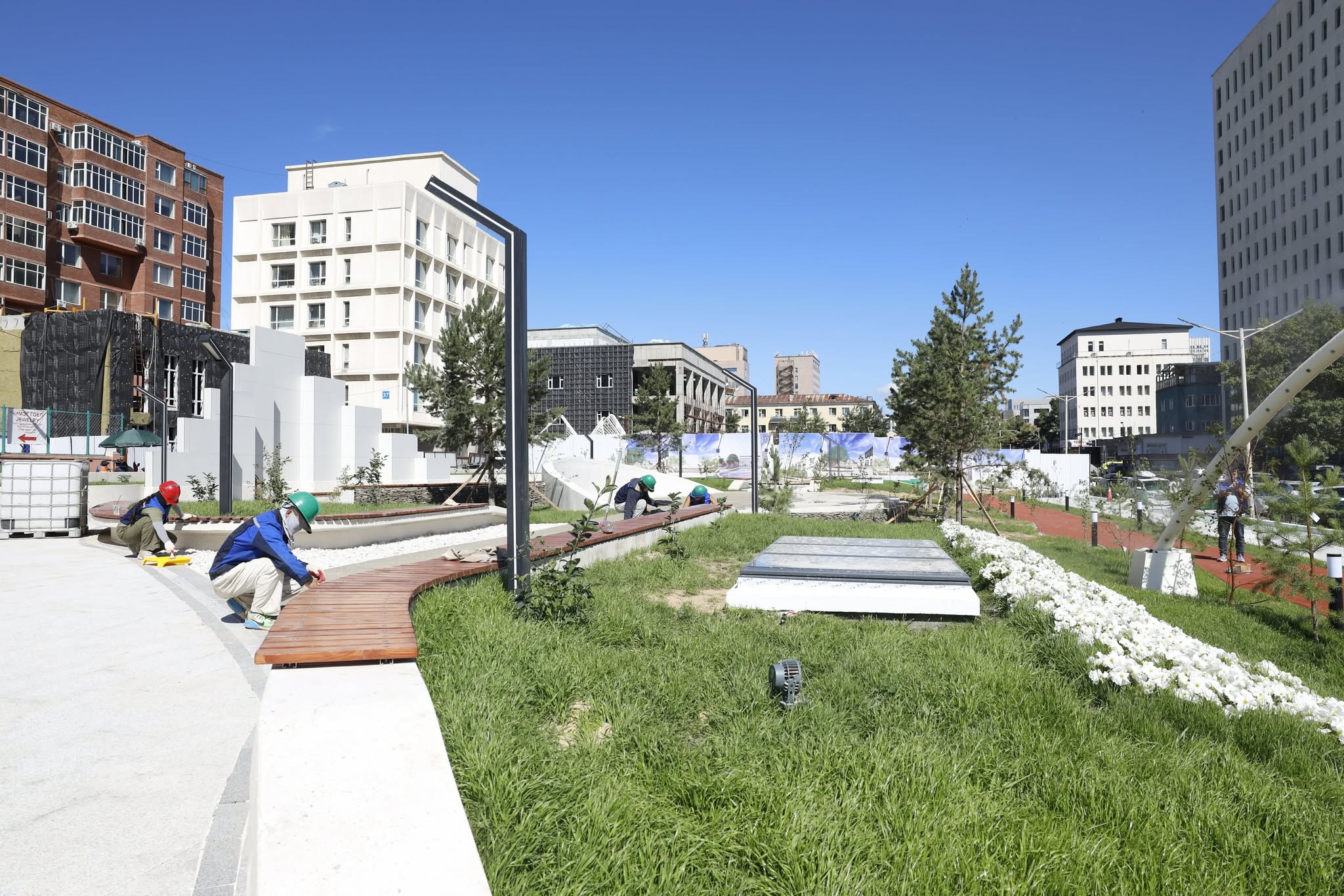 Ажлын явцын талаар нийслэлийн Засаг даргын Эдийн засгийн хөгжил, дэд бүтцийн асуудал хариуцсан нэгдүгээр орлогч Т.Даваадалай “Нийт 1.3 га талбайг хамарсан уг цэцэрлэгт хүрээлэн нь 109 автомашины далд зогсоол, дэргэдээ гурван давхар үйлчилгээний төвтэй байхаар төлөвлөгдсөн. Өнөөдрийн байдлаар нийт ажлын гүйцэтгэл 82 хувьтай үргэлжилж байна. Тодруулбал, цэцэрлэгт хүрээлэнгийн ил тохижилтын ажил дууссан бол далд зогсоолыг барих ажлын явц 90 хувь, үйлчилгээний төвийн барилгын гүйцэтгэл 15 хувьтай үргэлжилж байгаа юм. Барилга угсралтын ажлыг энэ оны арванхоёрдугаар сард дуусгах гэрээтэй бөгөөд гурван давхар үйлчилгээний төвийн барилгын ажлыг аравдугаар сарын 15-ны дотор дуусгахаар ажиллаж байна” гэв.