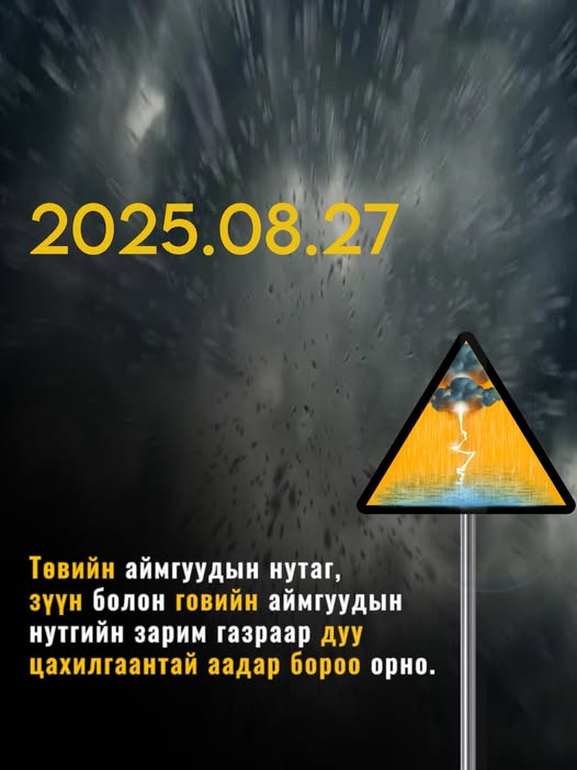 Болзошгүй мөндөр, аянга цахилгаан, үерийн аюулаас сэрэмжтэй байхыг анхааруулж байна