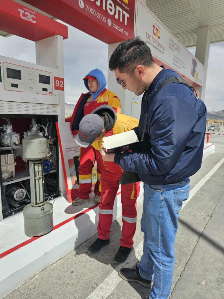 Баян-Өлгий аймгийн Стандарт, хэмжил зүйн хэлтсийн хэмжих хэрэгслийн баталгаажуулалтын мэргэжилтэн М.Маргулан хэмжих хэрэгслийн намрын ээлжит баталгаажуулалтын ажлаар Өлгий сумын аж ахуй нэгж, иргэдийн ажиллуулж буй шатахуун түгээх станцын шатахуун түгээгүүрүүдэд ажиллаж байна.