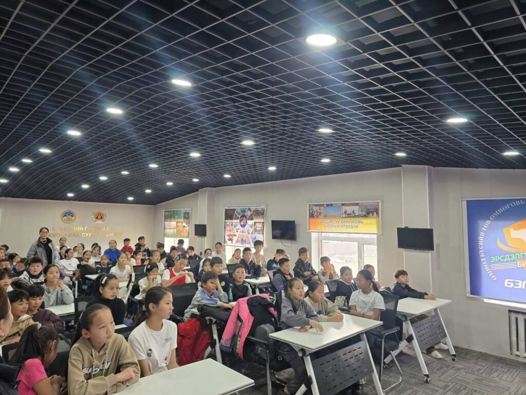 Энэ хүрээнд Өмнөд бүсийн төв-Өмнөговь аймгийн Онцгой байдлын газар Өмнөговь аймгийн Даланзадгад сумын ерөнхий боловсролын сургуулийн сурагчдад “Аюулгүй амьдрах ухаан” сургалтын хөтөлбөрийн дагуу гамшиг ослоос өөрийгөө болон бусдыг авран хамгаалах мэдлэг дадлага олгох сургалтад хамрагдаж байна.