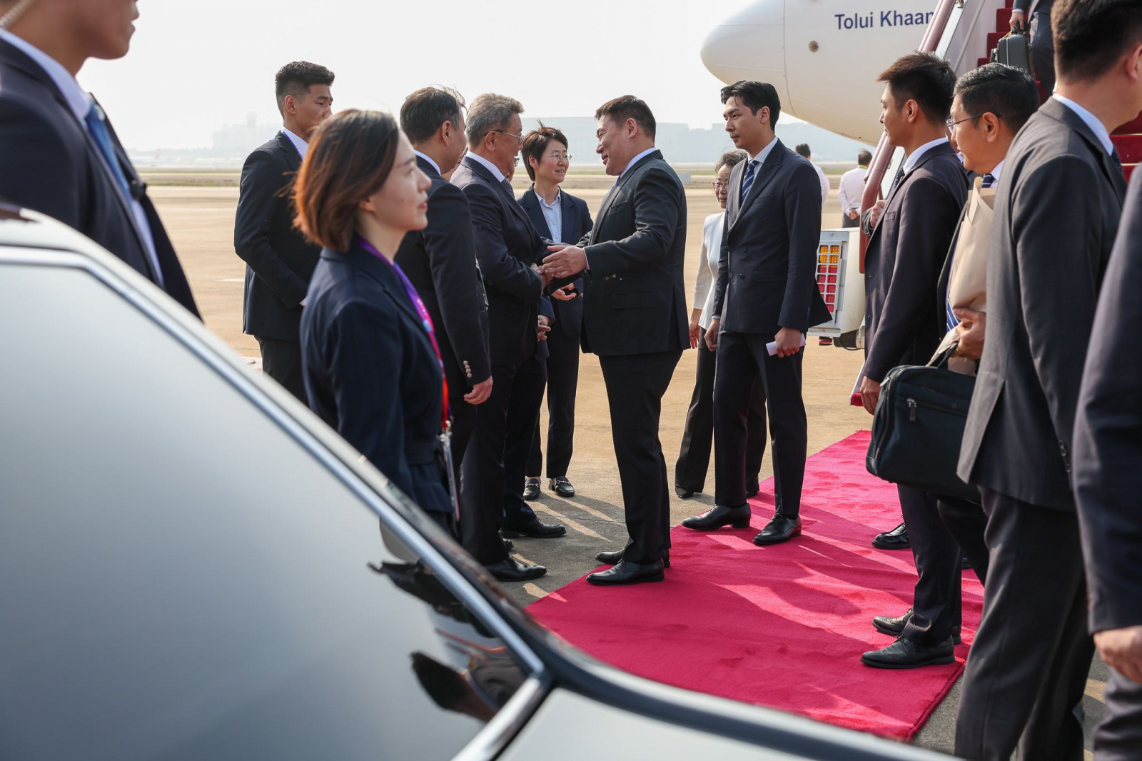 Монгол Улсын Ерөнхий сайдыг Шанхай хотын дарга Гун Жөн, БНХАУ-аас Монгол Улсад суугаа Онц бөгөөд Бүрэн эрхт Элчин сайд Шэнь Миньжюань, Монгол Улсаас БНХАУ-д суугаа Онц бөгөөд Бүрэн эрхт Элчин сайд Н.Энхболд болон албаны төлөөлөгчид угтлаа